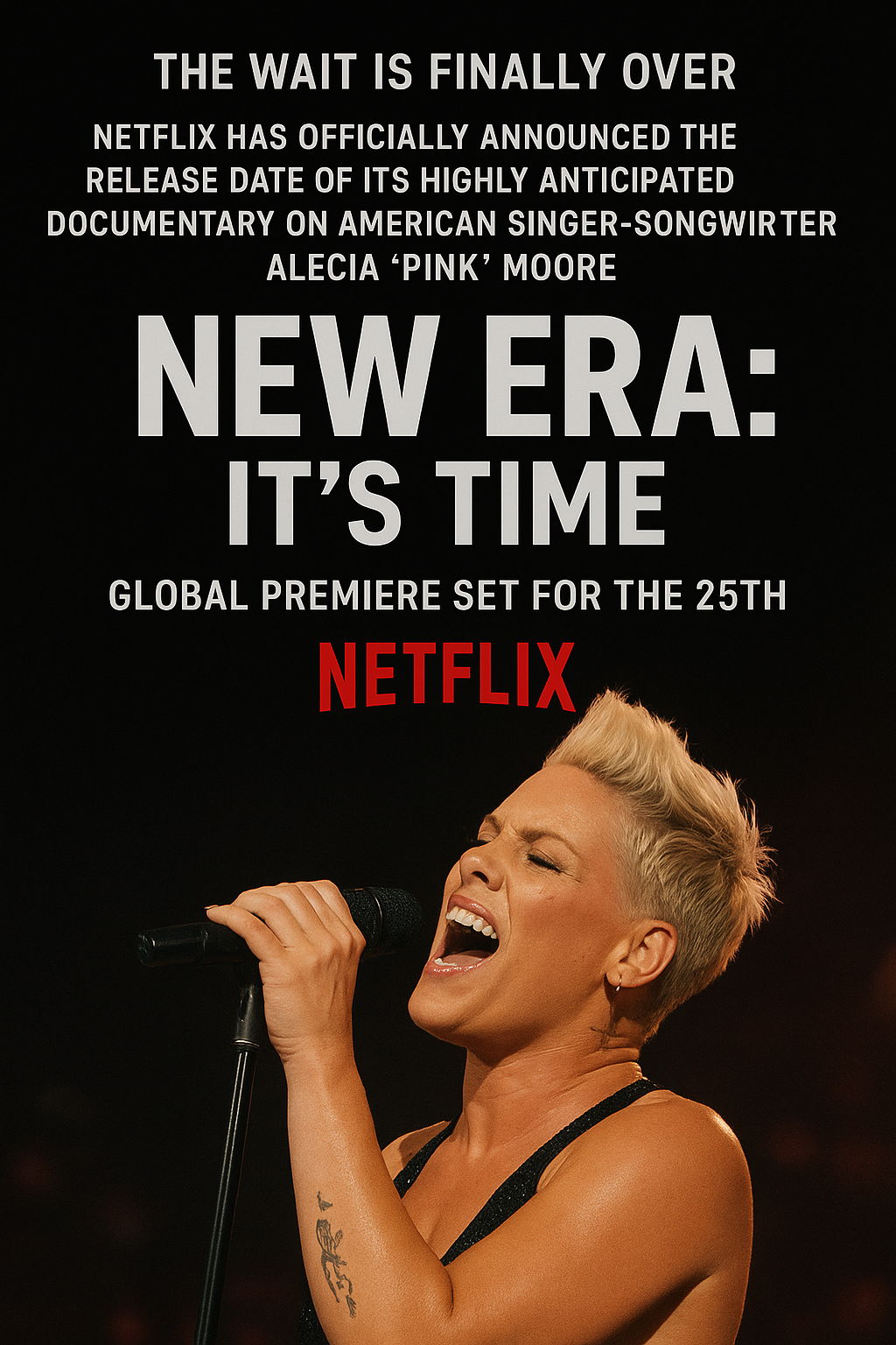 The wait is finally over. Netflix has officially announced the release date of its highly anticipated multi-part documentary on American singer-songwriter **Alecia “P!nk” Moore**, with the **global premiere set for the 25th**. Titled ***New Era: It’s Time***, the series is set to deliver an intimate, raw, and empowering look into the life of one of the most daring and influential performers of the modern era.