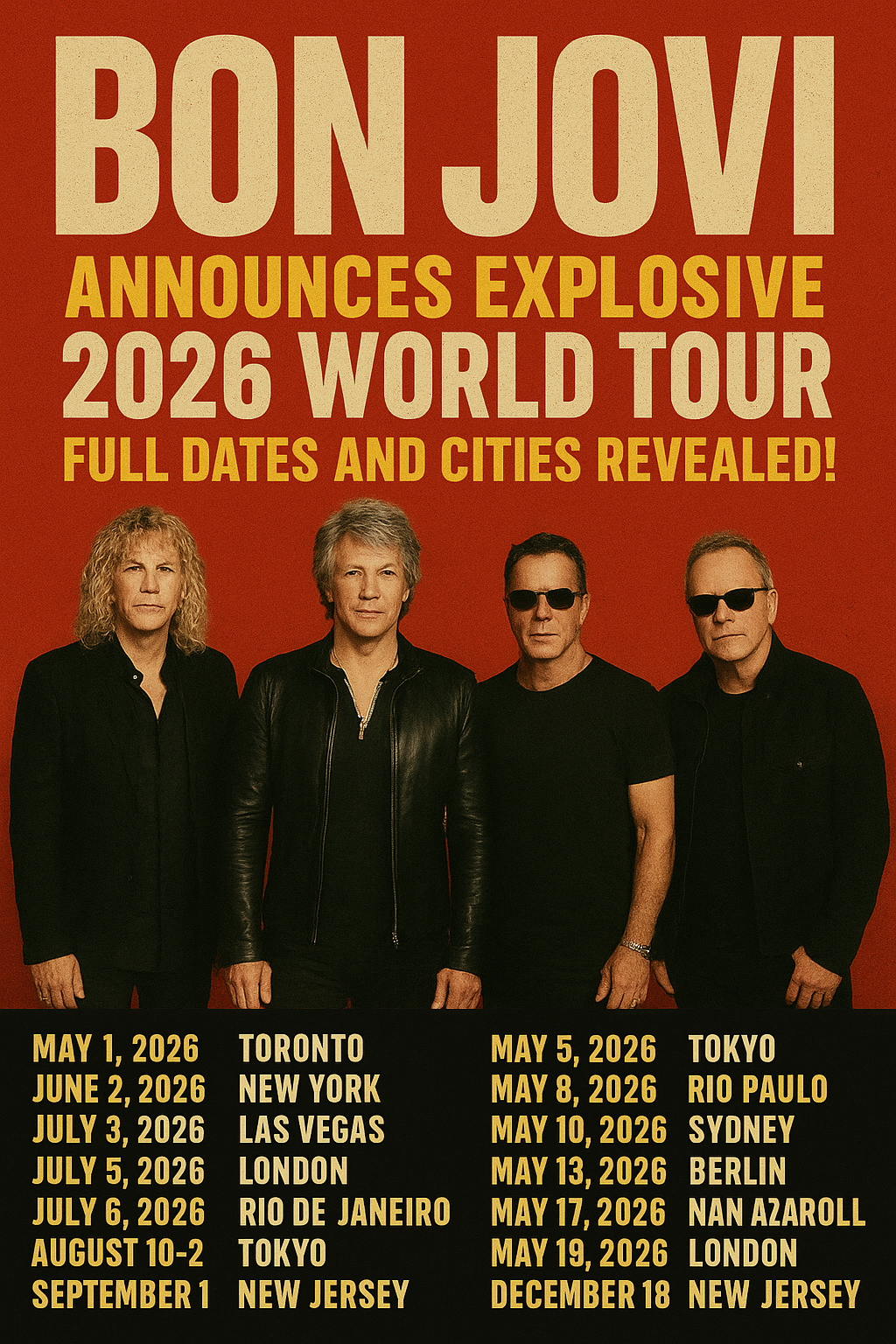 **Bon Jovi Announces Explosive 2026 World Tour — Full Dates and Cities Revealed!**