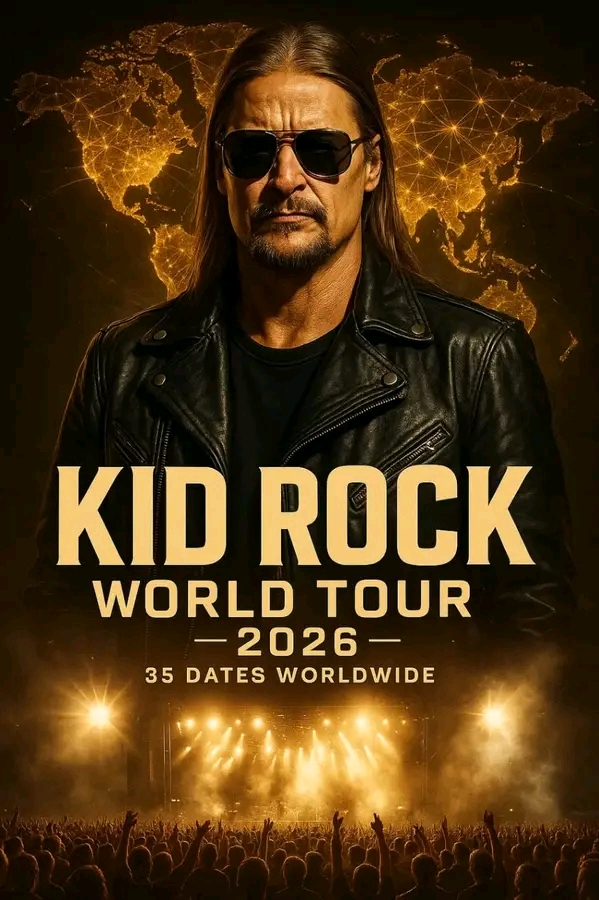 Rock-rap rebel **Kid Rock** has officially blown the lid off the music world with the announcement of his long-awaited **2026 World Tour**, marking his triumphant return to the global stage after years away. The tour, spanning **35 explosive dates**, will take him across North America, Europe, and Australia — a full-throttle comeback worthy of the genre-bending superstar who built a career on doing things his own way.