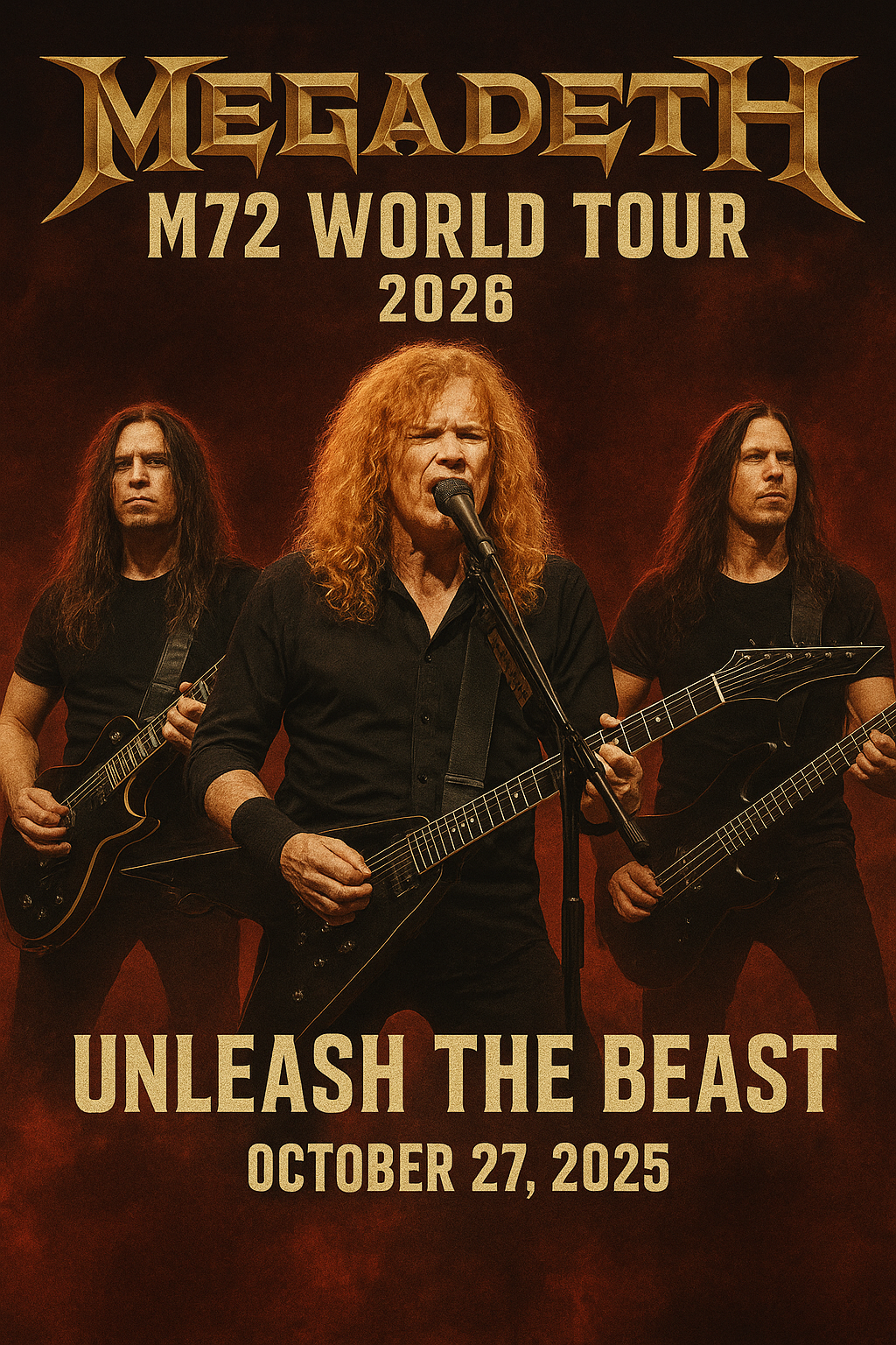 Following their blistering performances throughout 2025, Megadeth’s upcoming tour will see the band storm stages across North America, South America, Europe, Asia, and Australia. Fans can expect a reimagined stage production featuring pyro-laden theatrics, immersive visuals, and an audio assault that redefines the standard for live heavy metal. The *M72 World Tour* is being hailed as Megadeth’s most ambitious undertaking yet, blending their classic anthems—*Symphony of Destruction*, *Holy Wars… The Punishment Due*, *Hangar 18*—with thunderous renditions of tracks from their acclaimed latest album.