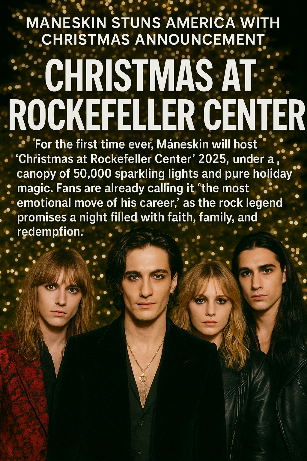 Måneskin has stunned America with a Christmas announcement no one saw coming — and it’s already redefining what a holiday tradition can look like. For the first time ever, the Italian rock sensation will host **“Christmas at Rockefeller Center” 2025**, promising a bold, emotional, and unforgettable night beneath a canopy of **50,000 sparkling lights** in the heart of New York City.