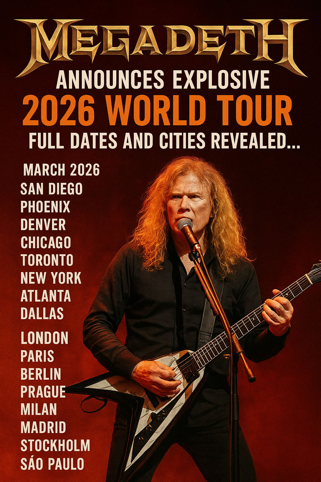 In a massive surge of excitement across the global metal community, Megadeth has officially announced their explosive **2026 World Tour**, marking one of the band’s most ambitious runs in over a decade. Dave Mustaine and the legendary thrash pioneers are gearing up to deliver a high-octane series of performances that promise to honor their legacy while showcasing a new era of power, precision, and unapologetic metal energy.