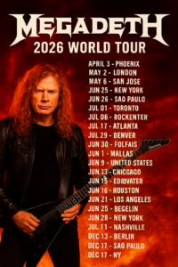 Metal fans, prepare yourselves — **Dave Mustaine** and his legendary band **Megadeth** have officially announced their **2026 World Tour**, and it promises to be nothing short of explosive. Known for their blistering riffs, ferocious energy, and politically charged lyrics, Megadeth is gearing up to take over stadiums and arenas around the globe with a tour that celebrates both their past and their unstoppable future.