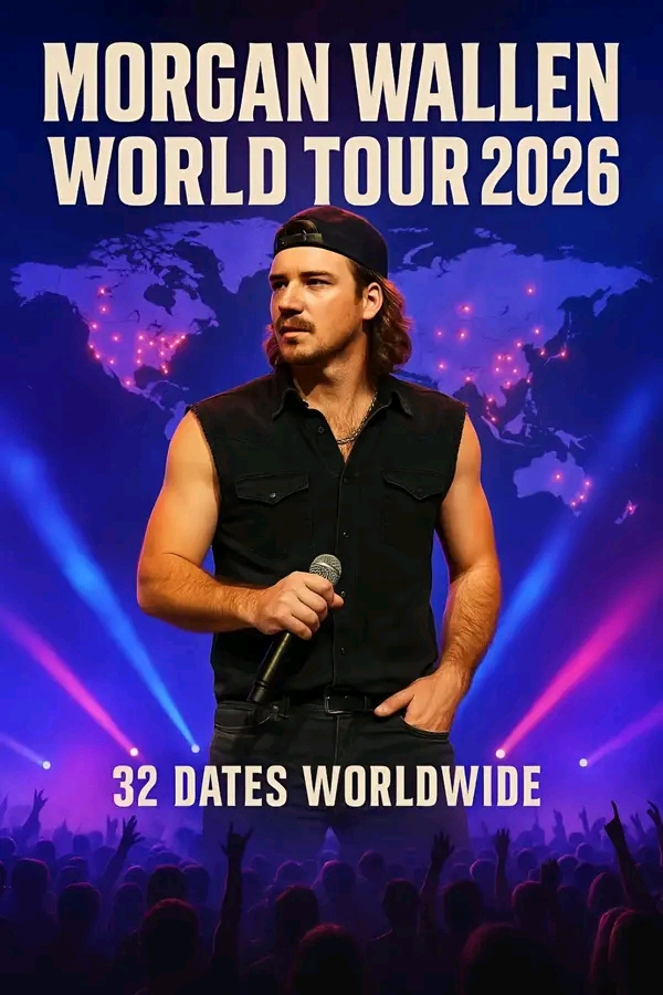 The wait is officially over — **Morgan Wallen** has unleashed the full schedule for his blockbuster **2026 World Tour**, and it’s nothing short of colossal. Spanning **32 massive shows** across three continents, the tour cements Wallen’s position as one of the most dominant live performers of his generation. From stadiums to open-air festivals to iconic arenas, the 2026 run promises a global wave of high-octane country energy.