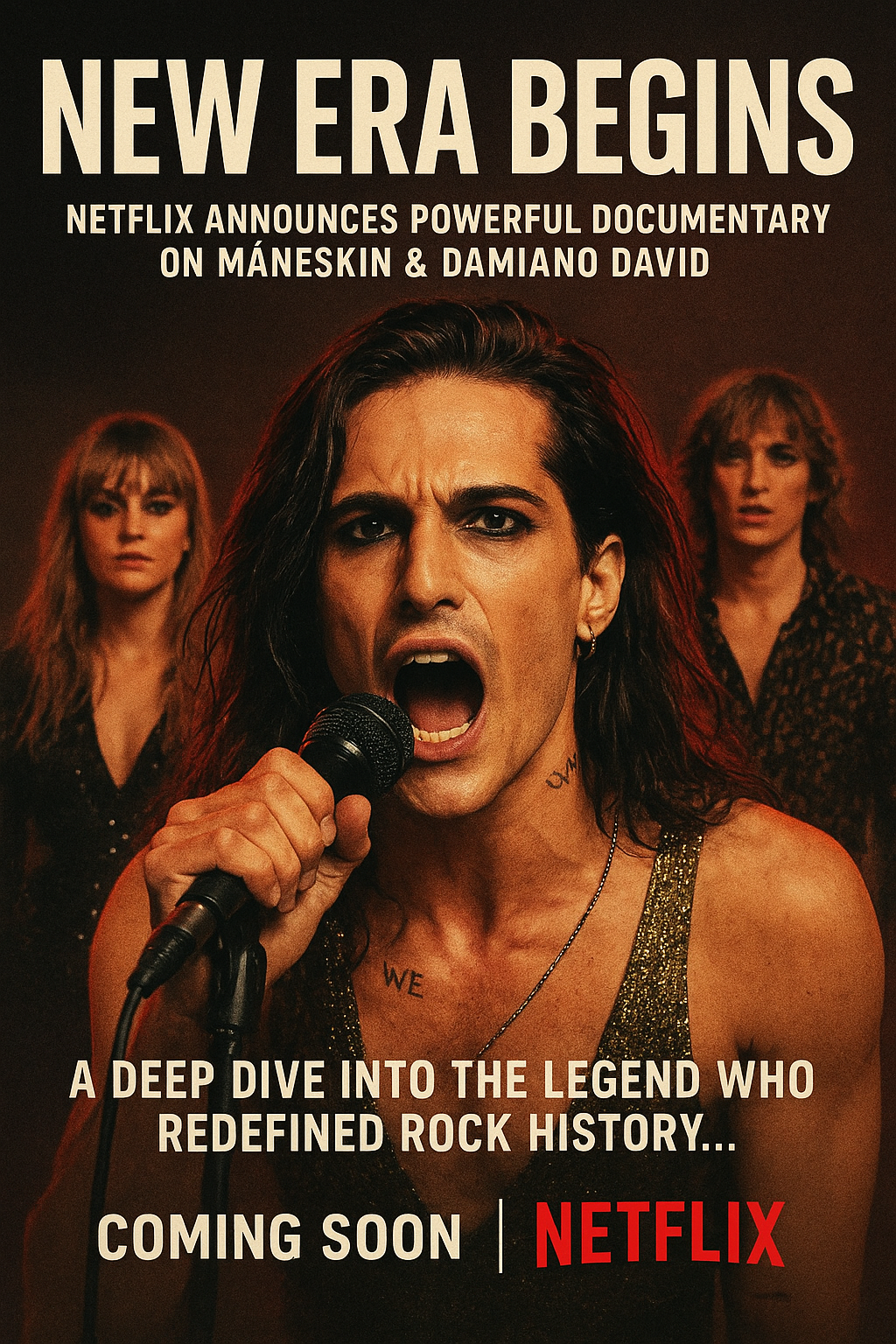 Netflix has officially unveiled its latest musical documentary masterpiece — *“NEW ERA BEGINS: The Måneskin Revolution”* — a bold and electrifying deep dive into the journey of one of the most dynamic rock bands of the 21st century. Centered around the charismatic frontman **Damiano David**, the film promises an unfiltered look at how Måneskin shattered boundaries, revived global interest in rock, and redefined what it means to be a modern rock legend.