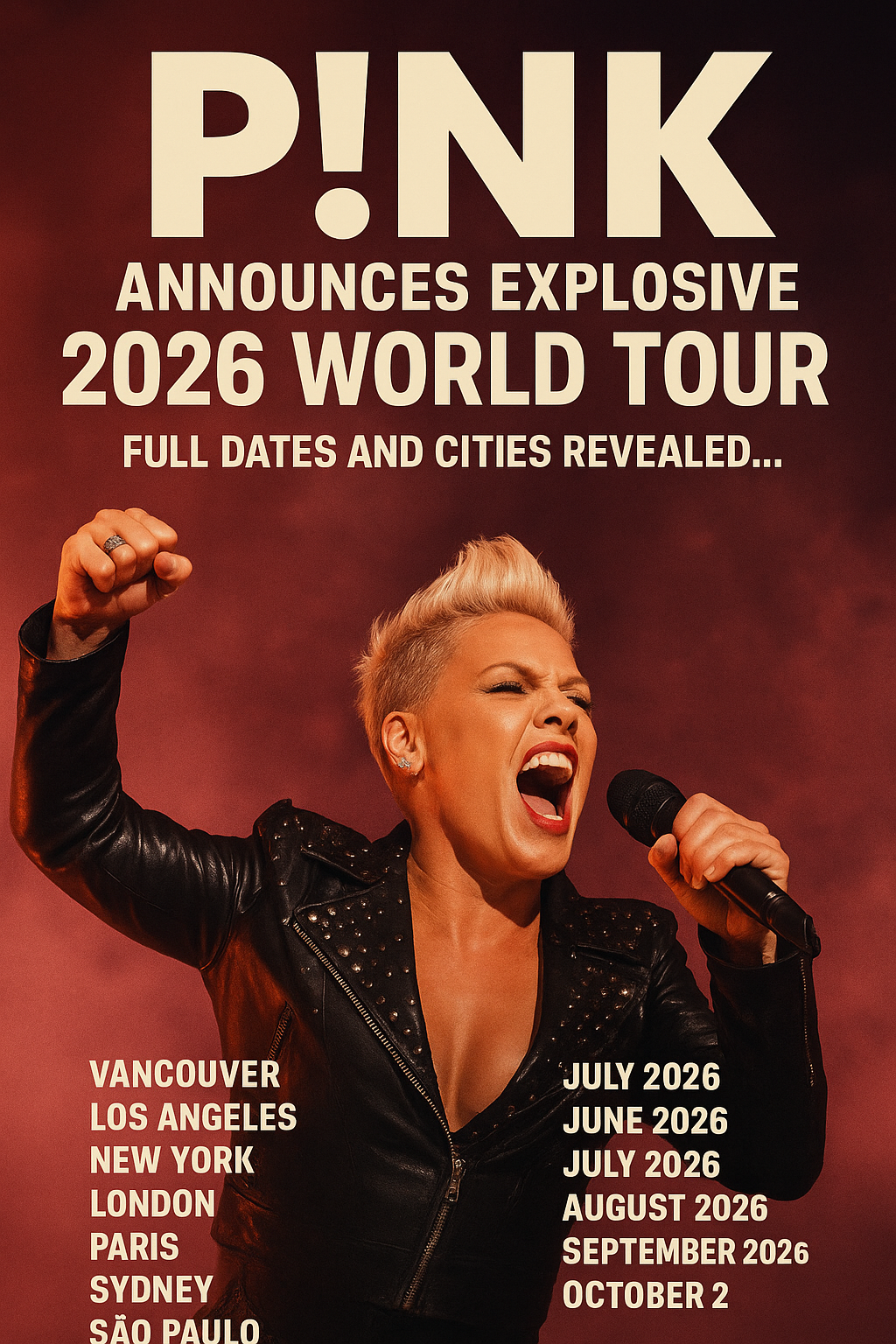 Global pop icon **P!NK (Alecia Moore)** has officially announced her highly anticipated **2026 World Tour**, marking one of the most electrifying returns to the stage in recent memory. Known for her powerhouse vocals, fearless aerial performances, and unapologetic authenticity, P!NK promises fans a tour that will redefine live entertainment and celebrate over two decades of chart-topping hits.