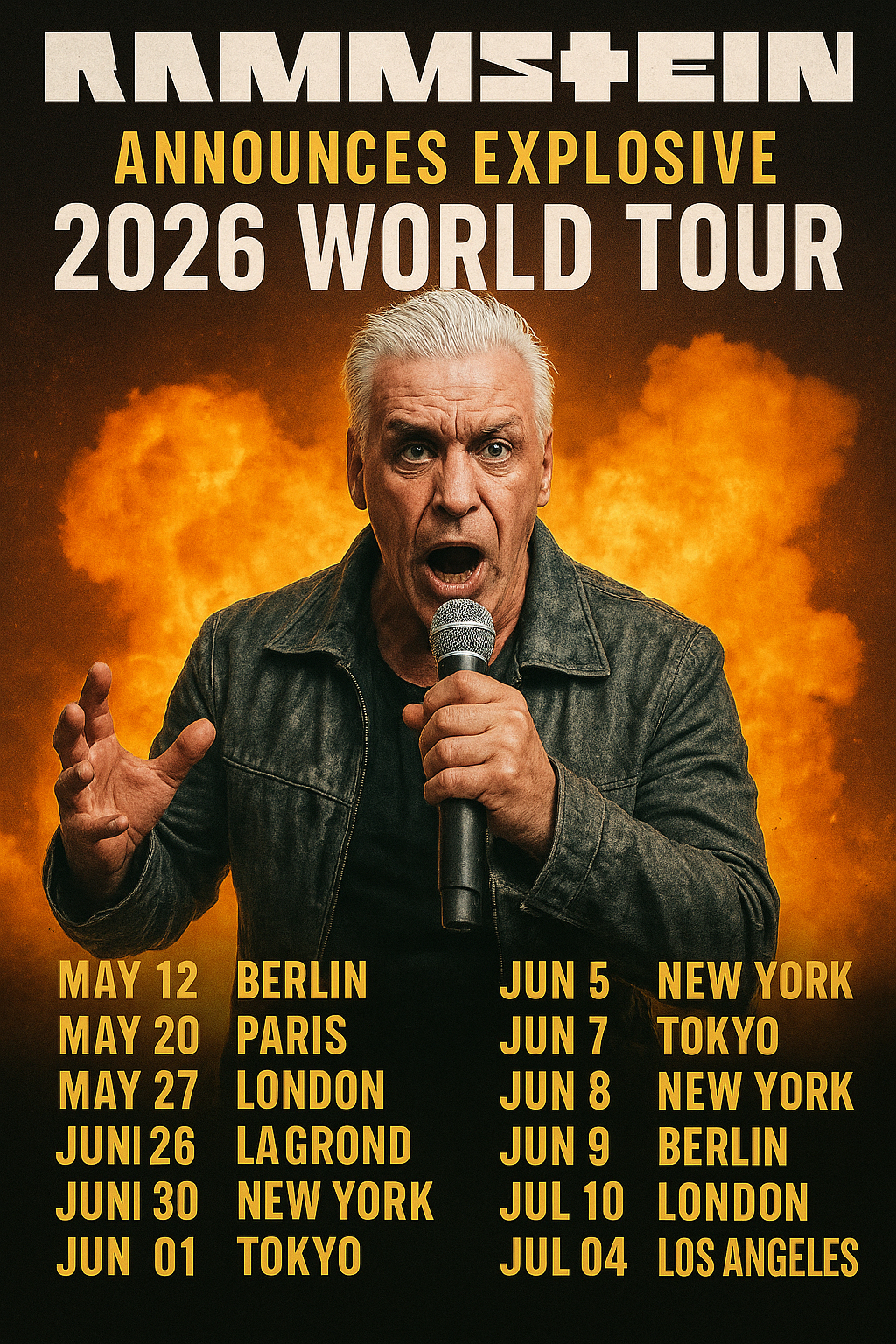 Rammstein’s legendary frontman Till Lindemann has officially announced the band’s **explosive 2026 World Tour**, sending shockwaves through the global metal community. Known for their unmatched pyrotechnic spectacles and visceral performances, Rammstein’s return to the road promises to be nothing short of incendiary — a fiery testament to three decades of industrial rebellion.
