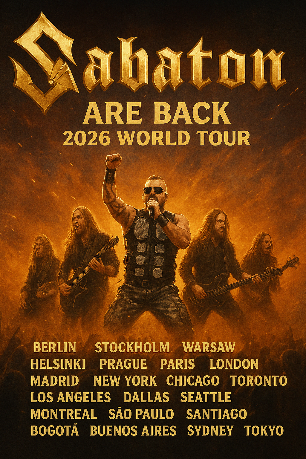 With new music teased, fan-favorite epics guaranteed, and a production built for maximum spectacle, Sabaton’s 2026 World Tour is shaping up to be a historic event — a triumphant return reminding the world that the war machine never dies.