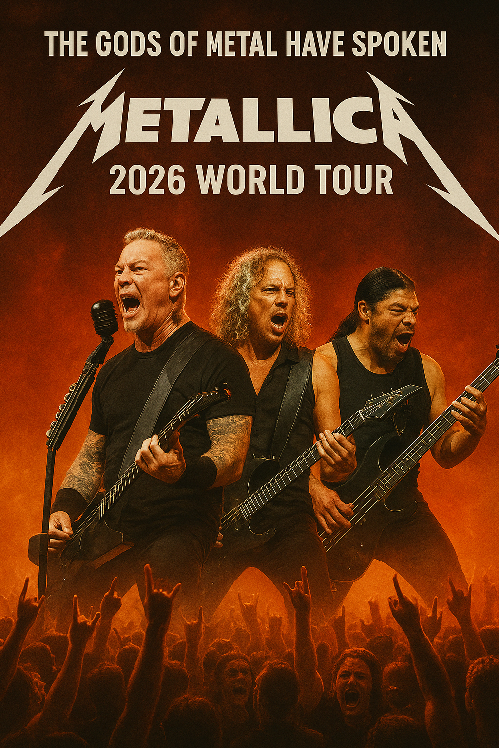 The gods of metal have spoken — **Metallica** is officially hitting the road again for a **massive 2026 world tour**, and fans across the globe are already losing their minds. Known for their electrifying performances and unmatched legacy, the heavy metal titans are set to unleash a tour that promises to be one of the most ambitious in their storied career.